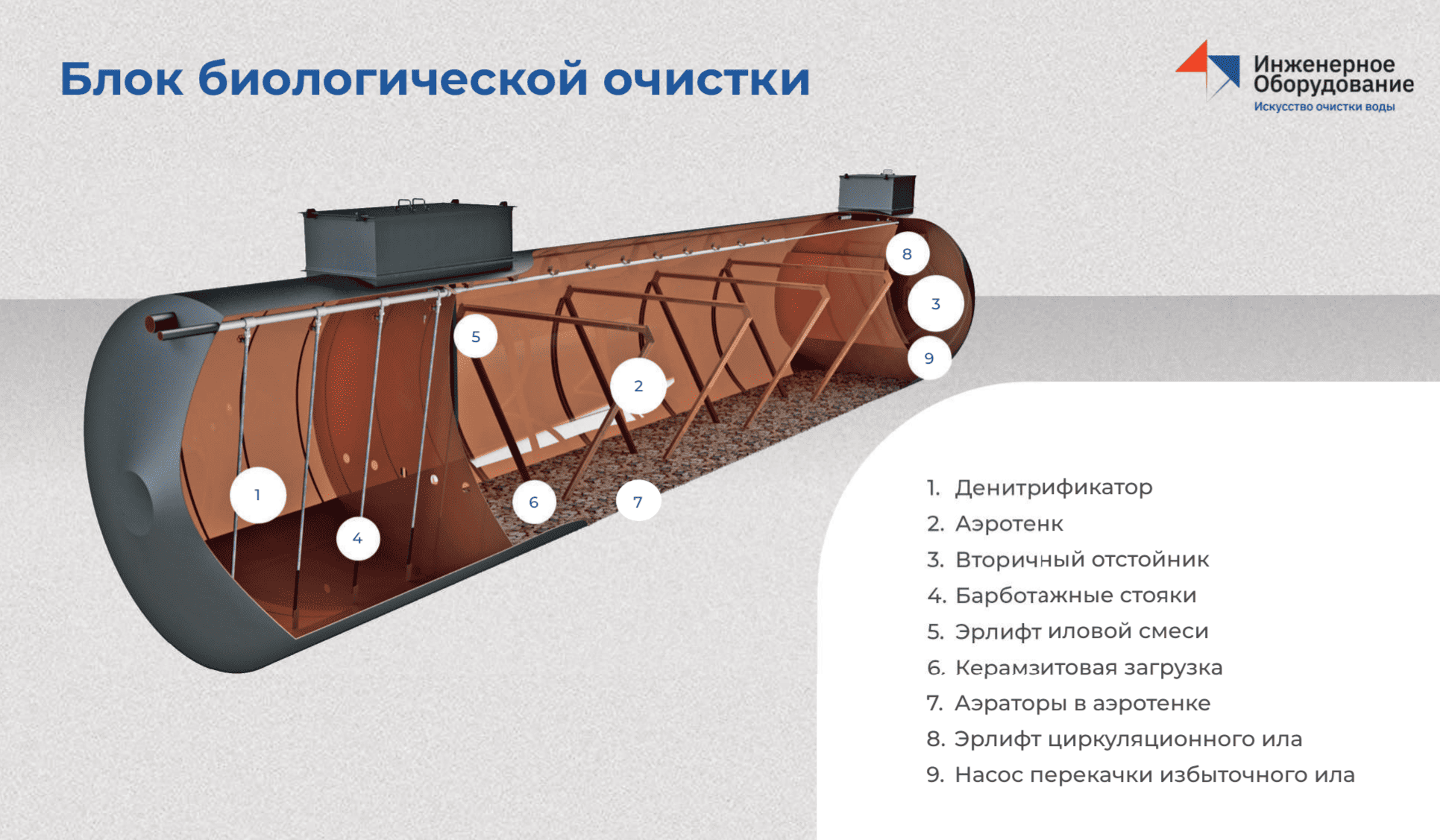 • ГЛУБОКАЯ многоступенчатая БИОЛОГИЧЕСКАЯ ОЧИСТКА с использованием иммобилизующей загрузки.